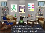 Because Strangetomato needed mental health posters. Because this week is Mental Health Awareness week. Because Mental Health is important. 5 Posters on Grilled Cheese, with encouragement for good mental health.